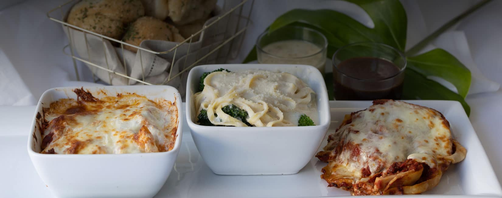 | Ultimate Italian | Italian Specialties | Includes your choice of entree (chicken parmesan or chicken marsala), homemade baked ziti, and jumbo meatballs… all beef. Served with antipasto salad, and fresh baked garlic rolls. Bottled water and assorted bottled soda included. Upgrade to canned soda for $1.99 pp. Don’t forget to add cookies or fruit for dessert! | $18.99 | italian-specialties | |||